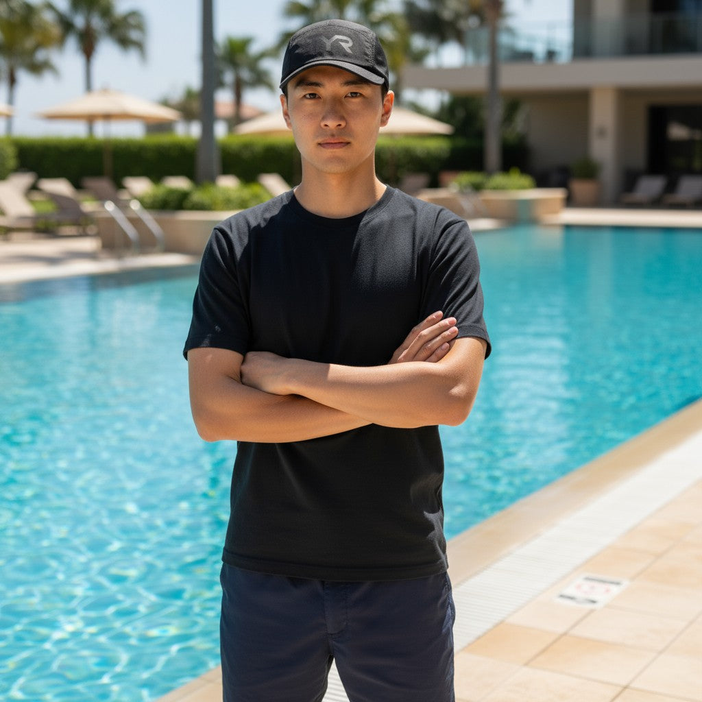 Fabricado con tejido 100 % poliéster, incorpora paneles laterales de malla y banda interna absorbente que mantienen la cabeza fresca y seca.
