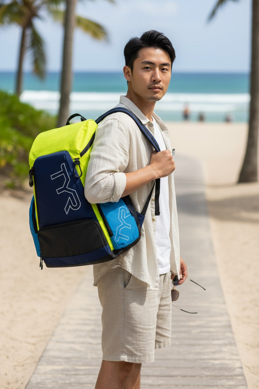 Este modelo incorpora funciones de última generación diseñadas para deportistas en movimiento. Su diseño compacto permite maximizar el espacio de almacenamiento sin agregar volumen. Cuenta con acolchado contorneado para mayor ergonomía y confort lumbar, múltiples bolsillos frontales y laterales, compartimentos de malla expandibles para separar artículos húmedos y secos, ganchos de resorte para trajes mojados, bolsillo de malla para botella, correas ajustables y un espacio protegido para dispositivos electrónicos grandes.
